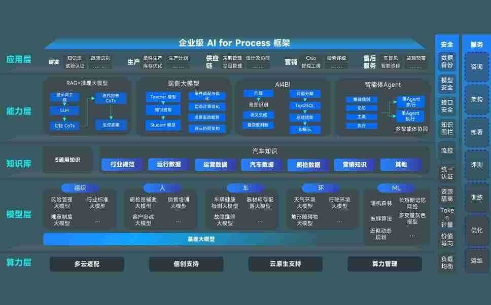 云顶国际8588yd问学智车解决方案是一套基于AI技术的汽车行业智能化系统,,,,覆盖从底层算力到顶层AI应用的全栈方案。。方案由算力层、、、、模型层和应用层组成:算力层,,方案支持多种一体机配置,,,具备云端灵活部署、、、、多云适配以及动态优化计算资源的能力;模型层,,,,云顶国际8588yd问学平台版提供了企业级AI应用一站式构建与管理平台,,支持基于后训练强化技术的汽车企业专属模型的训练、、评测和运营;应用层,,,云顶国际8588yd问学DeepSeek版提供包括超级员工、、、、智能招采、、、智能营销、、智能客服、、、、AI for BI等一系列解决方案,,,,可助力汽车行业实现数字化转型,,,,让管理更智能、、响应更敏捷。。。。