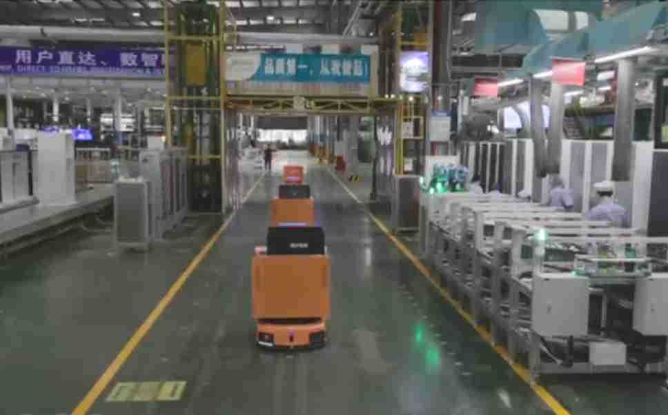 为车载冰箱物流配送打造的智能解决方案,,包含产中物流通过潜伏举升AMR搬运至线边,,产后成品物流智能仓储,,,流程包含产中物流智能齐套入库,,,线边安灯叫料AMR智能配送至线边,,,成品入库、、、出库,,,,通过无人堆高车机器人,,,智能仓储管理替代人工作业管理,,,实现更高存储、、更高效率、、、、更具柔性化的解决方案。。。。